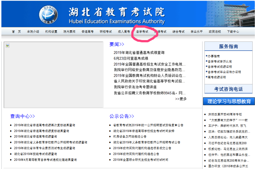 找到后打开考试服务网。在导航菜单中找到要考的类型,比如自学考试,点击。